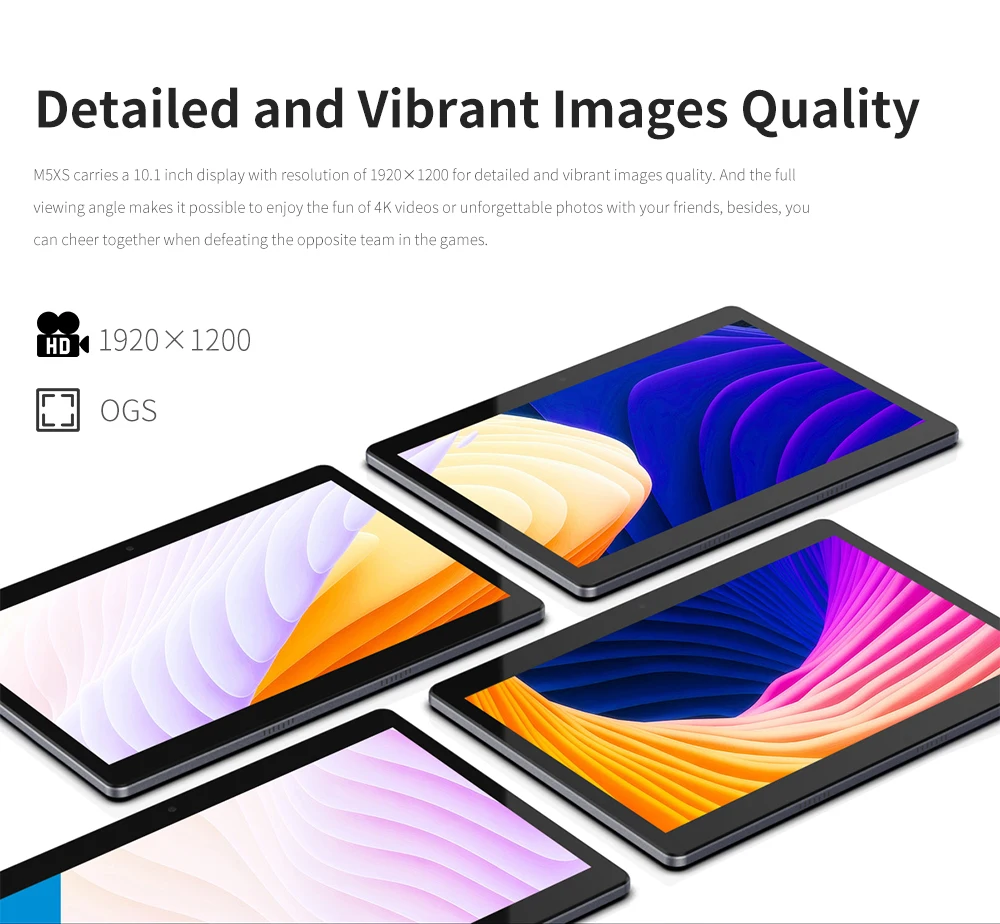 M5XS carries a 10.1 inch display with resolution of 1920×1200 for detailed and vibrant images quality. And the full viewing angle makes it possible to enjoy the fun of 4K videos or unforgettable photos with your friends, besides, you can cheer together when defeating the opposite team in the games.