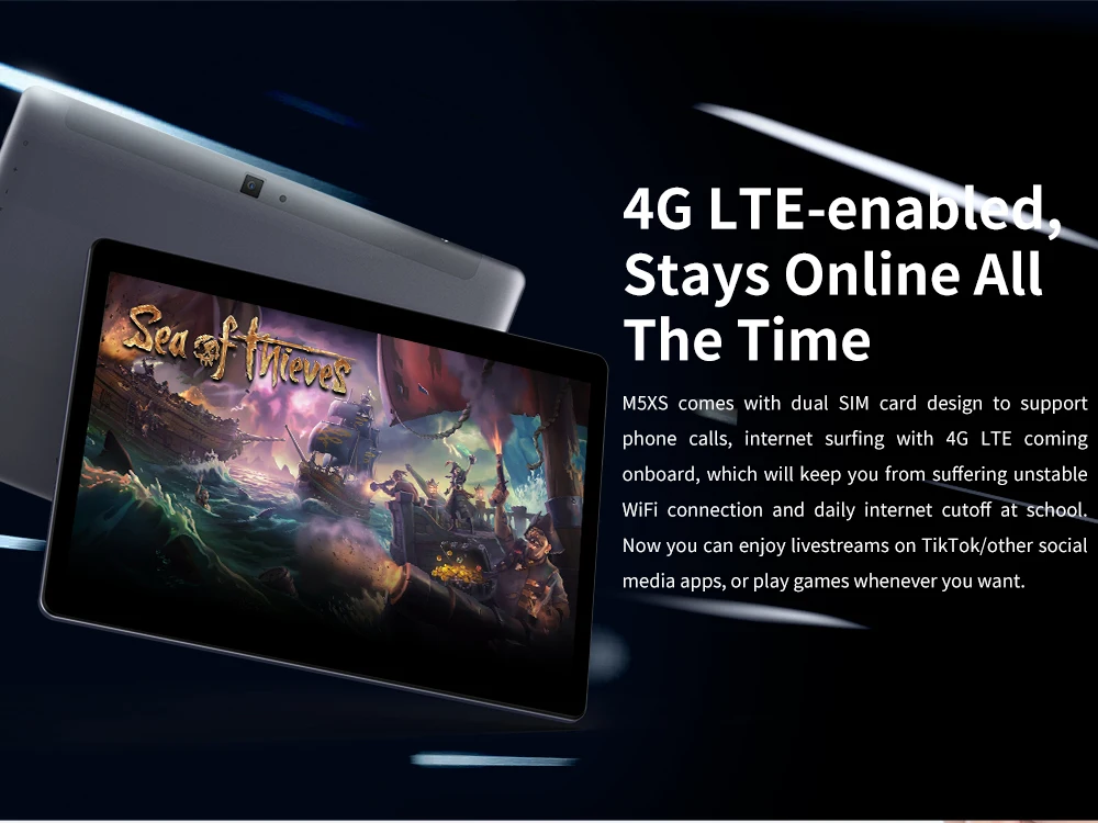 M5XS comes with dual SIM card design to support phone calls, internet surfing with 4G LTE coming onboard, which will keep you from suffering unstable WiFi connection and daily internet cutoff at school. Now you can enjoy livestreams on TikTok/other social media apps, or play games whenever you want.