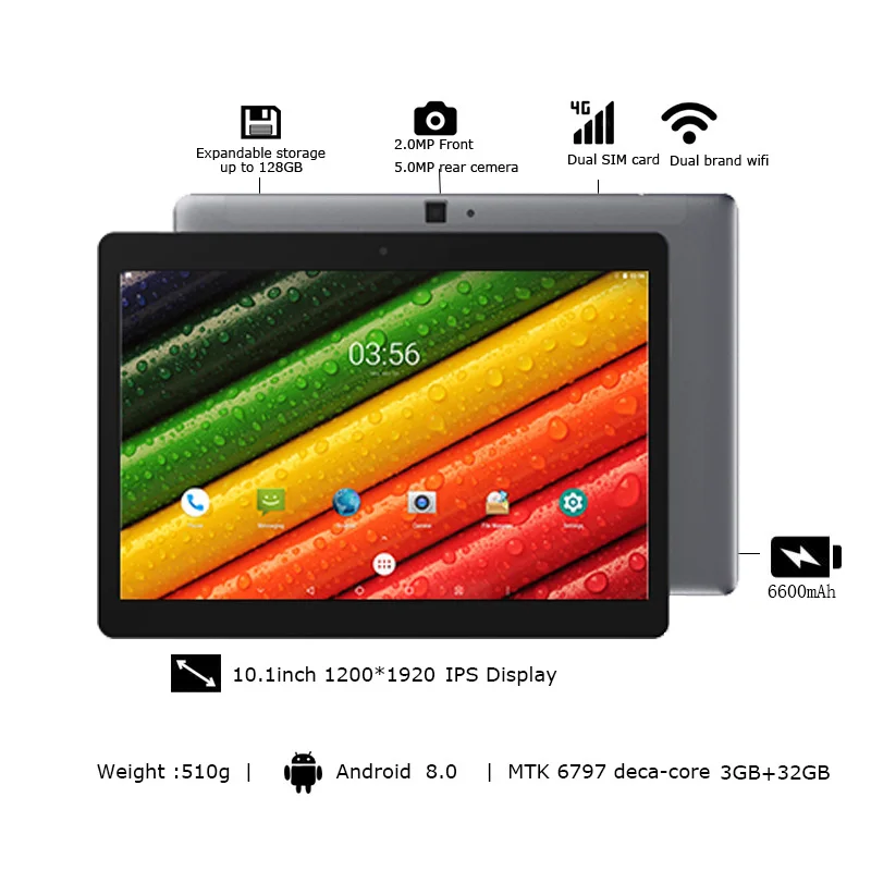 Perkbox M10 5G WiFi 10 inch Octa Core tablet 3GB RAM + 32GB ROM Android 9 OS 1280x800 HD IPS Screen 5.0MP Camera 4G FDD LTE GPS