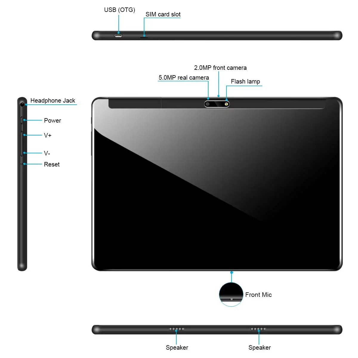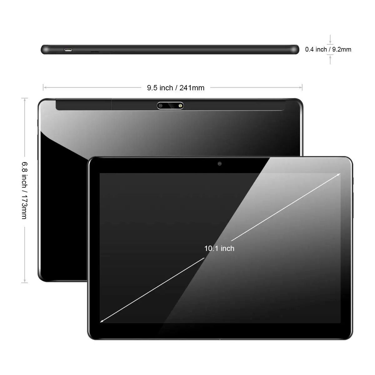 Basic Information: * Tablet PC Brand: BDF* Screen Size: 10.1inch* ROM: 2GB/32GB* Resolution: 1280*800 IPS* Operating System: Android 9.0* CPU Processor: MTK6580* Standard Battery Capacity: 5000mAh Networks and Wireless: * WiFi: Support WiFi (Built-in 802.11b/g/n WLAN Card)* 3G: Built-in, Support 3G calling, WCDMA 850/2100MHz* 2G: Support 2G calling, GSM 850/900/1800/1900MHz* SIM Card: Support* Bluetooth: Support* GPS: Support Additional Features: * Camera: Front Camera 2.0MP; Rear Camera 5.0MP* Input/Output Ports: - 3.5mm Audio Out Port*1;- Micro USB port*1; - Micro TF Card Slot*1;- SIM Card Slot*2* OTG: Yes* Output Device: Built-in Loud speakers* Input Device: Built-in Microphone* Play Store: Yes, Built in* Android Market: Yes, You can download thousands of APPS from the Google Android Market* Adobe Flash: Support* Languages: Afrikaans, Bahasa Indonesia, Bahasa Melayu, Dansk, German, English, Spanish, Filipino, French, Italian, Magyar, Dutch, Portugues (Brasil), Portugues (Portugal), Vietnamese, Turkish, Greek, Russian, Arab, Thai, Korean, Chinese(trad), Japanese etc Package Includes: * 1 piece Tablet PC* 1 piece Standard Charger* 1 piece USB Cable* 1 English User Manual