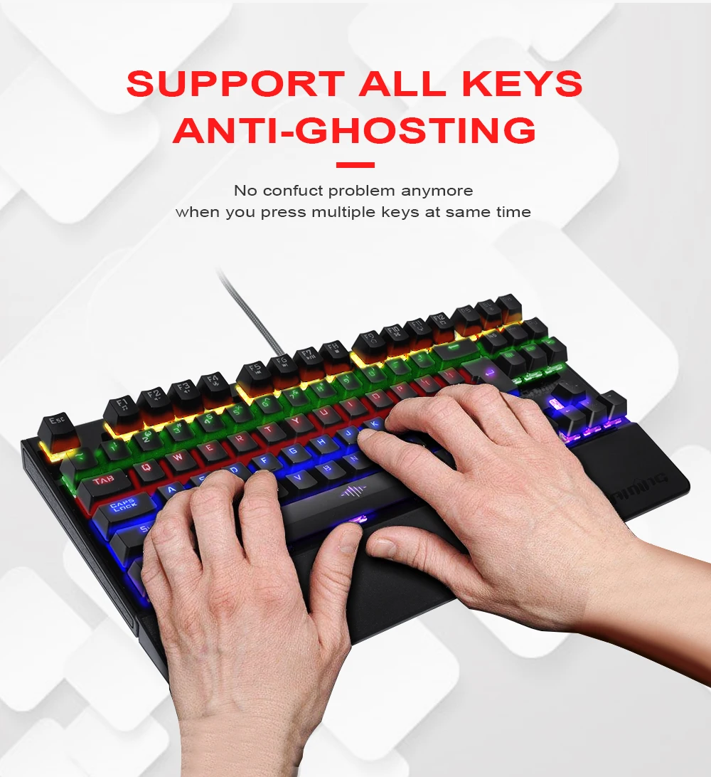 The best product you are looking for is "DeepFox Mechanical Gaming Keyboard 87 Keys Blue Switch Illuminate Backlight Anti-ghosting LED Keyboard Wrist Pro Gamer Keyboard". This product is available and ready to be purchased. Get attractive discounts every time you shop in our store (aliexpress.com). Aliexpress also provides a coupon of $ 3 for the first buyer to shop there. don't forget to bookmark our store page so you can go shopping again anytime..