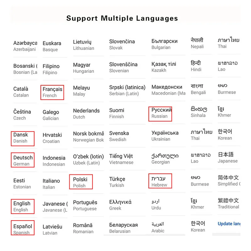 A: Yes, it supports Portuguese as well as Google Service and OTA Update.