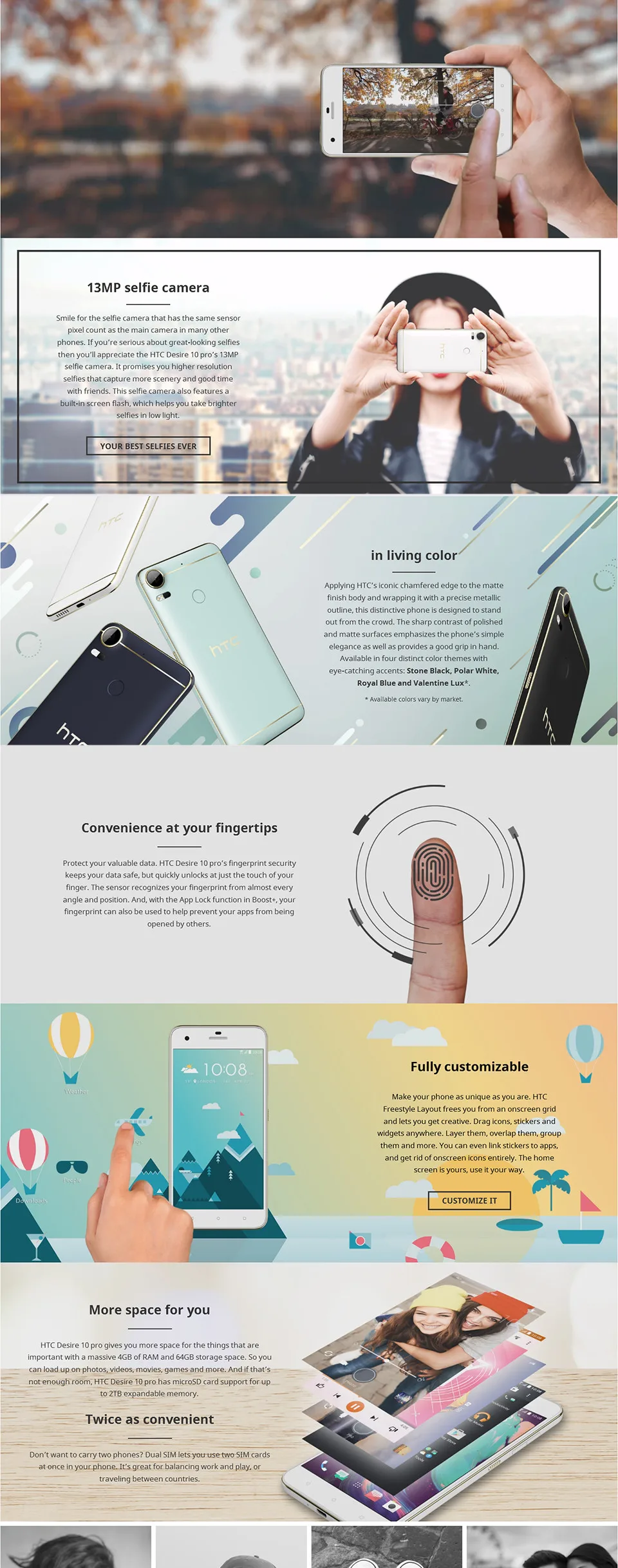| 100% Original HTC Desire 10 Pro 4GB RAM 64GB ROM LTE Phone Octa Core Dual Sim Android OS Dual SIM 20MP 5.5 refurbished phone |