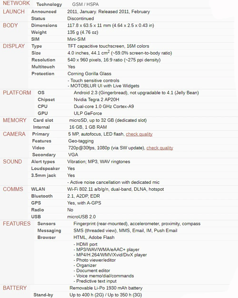 | 100% Original Unlocked Motorola ATRIX 4G MB860 mobile phone Dual-core 4.0'inch 1GB RAM 16GB Phone refurbished |