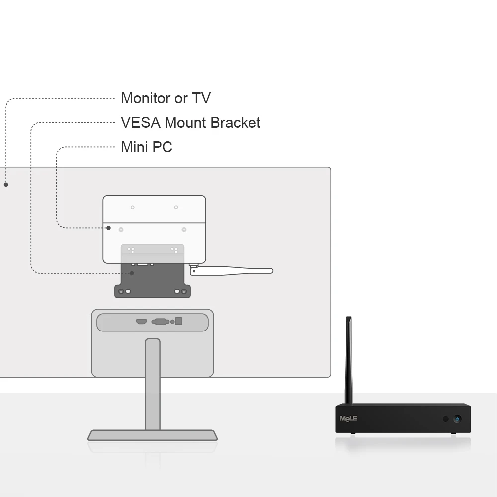 MeLE Mini PC is the ideal solution for both home entertainment and business applications, delivering swift yet extremely quiet performance with the latest Intel® Celeron® Quad-Core processors and a fanless design. It can be placed almost anywhere and mounted to the back of a display for a space-saving, all-in-one solution, providing flexible compatibility for a wide range of usage scenarios.
