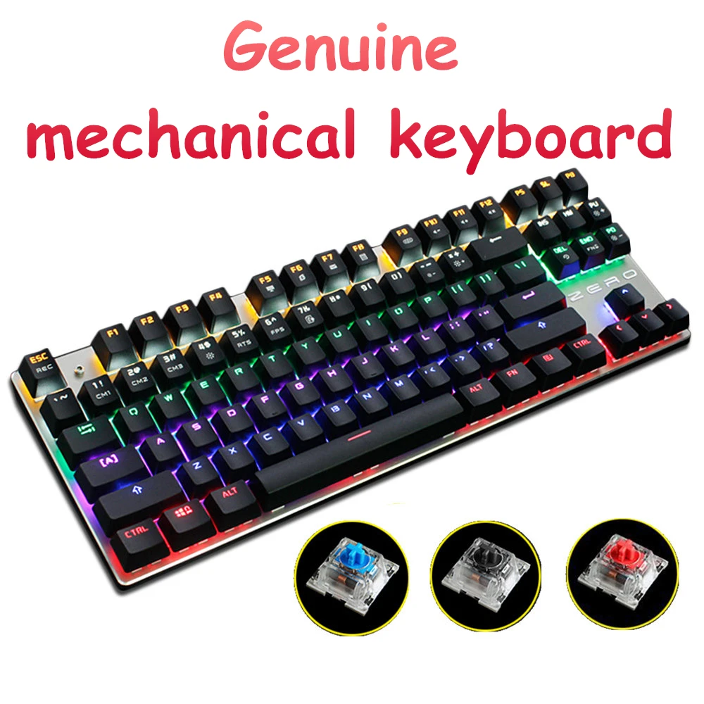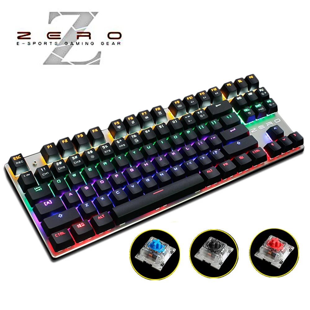 | Metoo Backlit Gaming Original Mechanical Keyboard Anti-ghosting 87 LED Wired Keyboard Blue/Red/Black Switches Russian sticker |