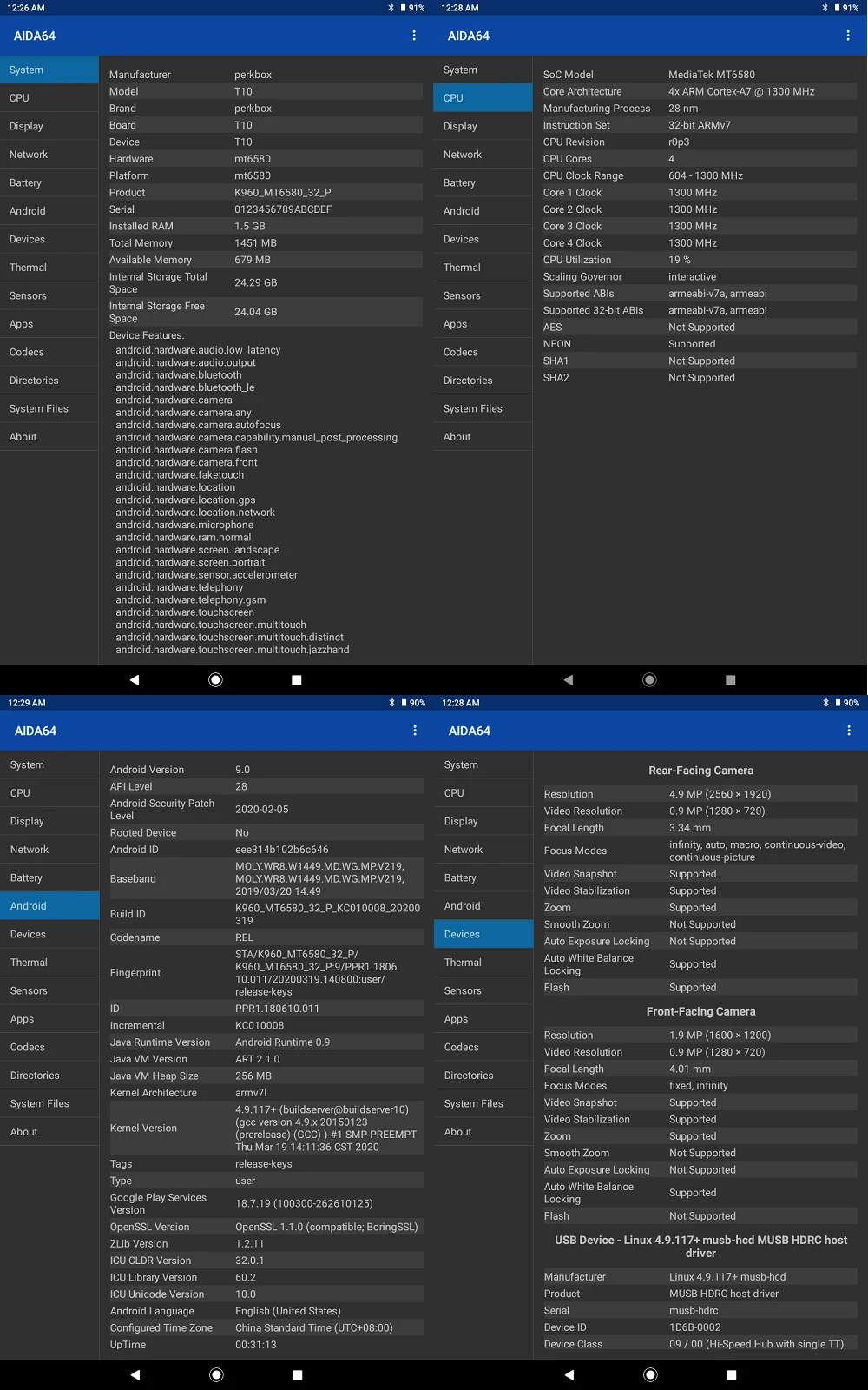Perkbox T10 Pro 10 inch tablet 32GB ROM Storage WiFi Bluetooth 1280x800 HD IPS Screen 5.0MP HD WebCam Android 9.0 phone call tablet GPS