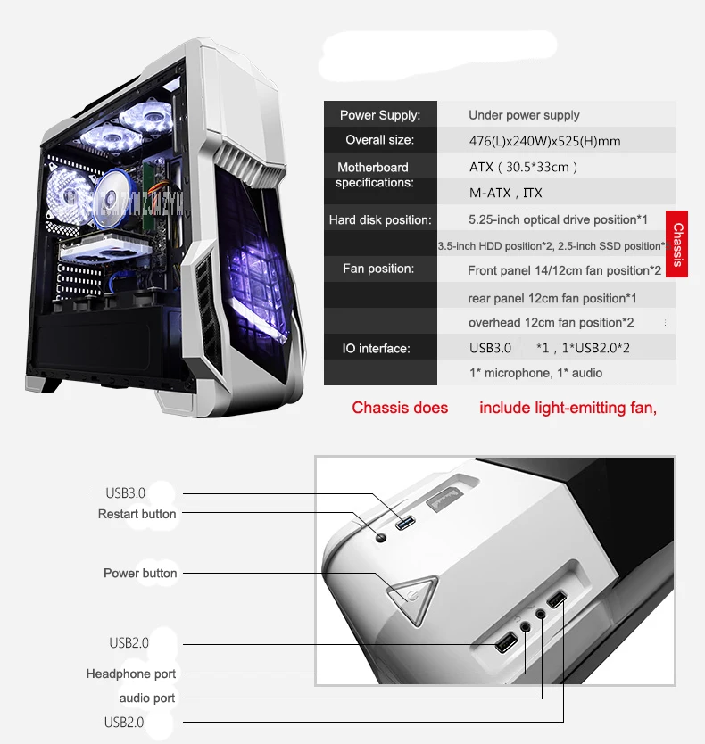 Weight: 11kg Chassis include light-emitting fan Picture showing :
