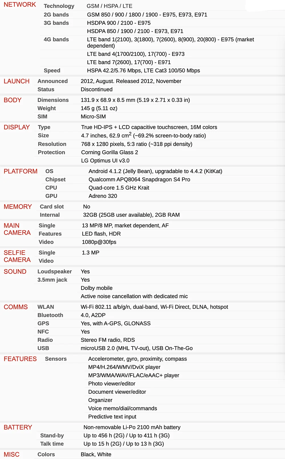 | 100% original LG Optimus G F180 F180L Quad-core 2GB RAM 32GB ROM 13.0 MP 4G WIFi NFC Cellphone Free shipping |