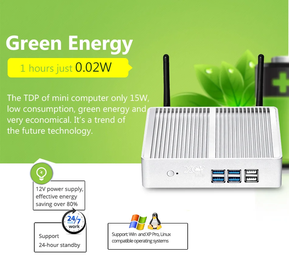 XCY Intel Core i5 7200U i3 7100U i7 4500U Fanless Mini PC Windows 10 4K HTPC Thin Client Desktop Computer NUC HDMI VGA WiFi 6USB