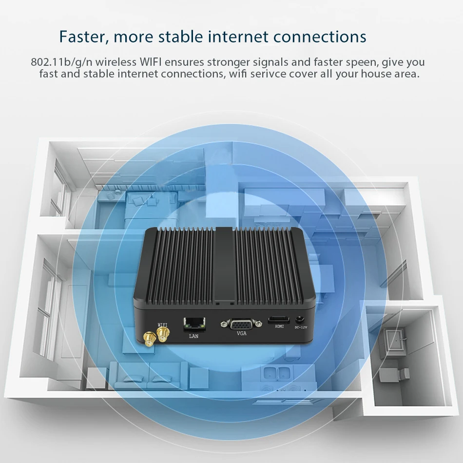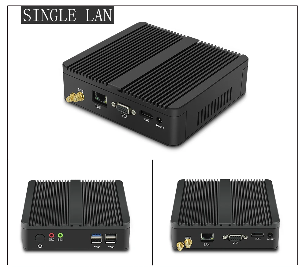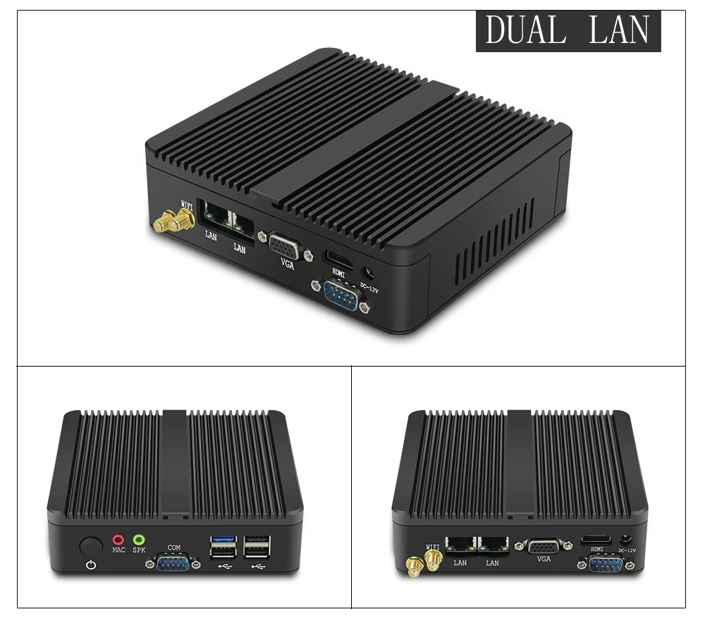 | Fanless Mini PC Intel Pentium J2900 Quad Core 2.41GHz 2*LAN 2*COM Windows 7/8/10 Computer Wifi HDMI VGA Household HTPC Desktop |