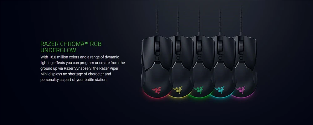 With 16.8 million colors and a range of dynamic lighting effects you can program or create from the ground up via Razer Synapse 3, the Razer Viper Mini displays no shortage of character and personality as part of your battle station.