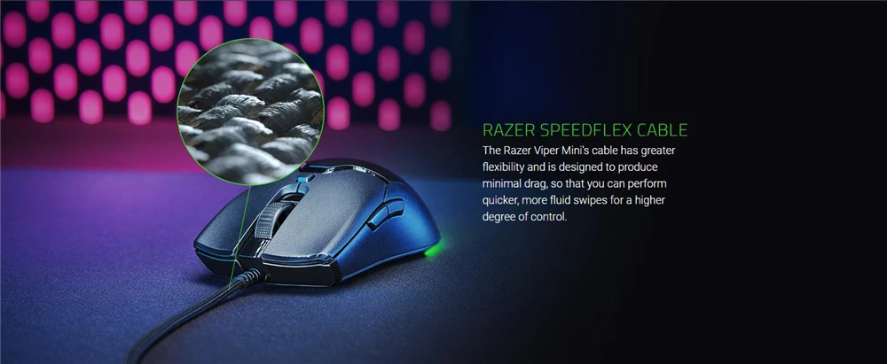 The Razer Viper Mini's cable has greater flexibility and is designed to produce minimal drag, so that you can perform quicker, more fluid swipes for a higher degree of control.