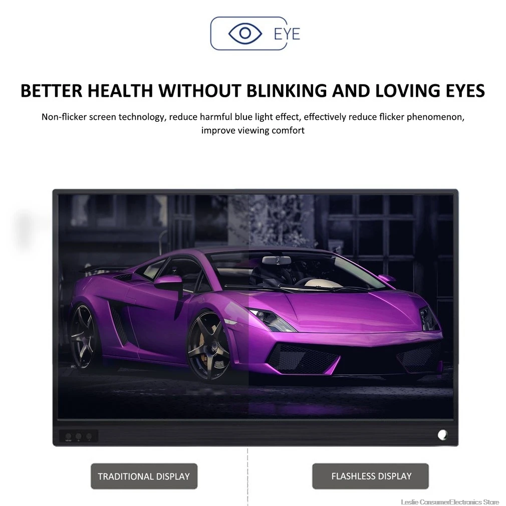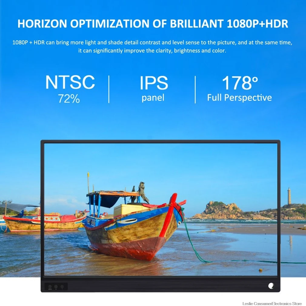 1.Large screen:15.6 Inch 1920RGBx1080P resolution portable monitor.