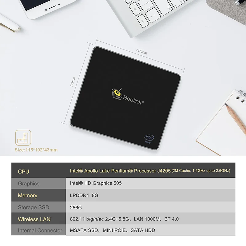 | 8GB 256GB beelink J45 mini office computer CPU J4205 AC wifi BT 4.0 support 2.5HDD 1000M lan USB3.0 genuine windows10 mini pc |