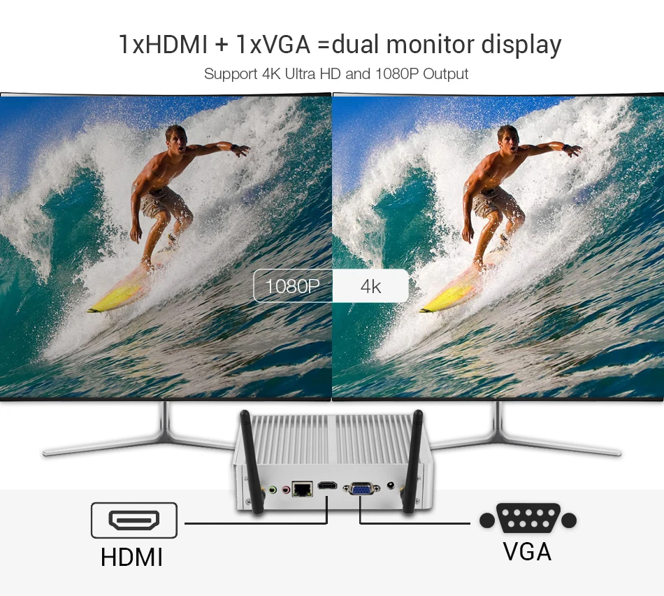 Intel Core i3 7100U ( 2 core 4 threads, 2.40GHz, TDP: 15W )Intel Core i5 7200U ( 2 core 4 threads, 2.50GHz, TDP: 15W )Intel Core i7 5500U ( 2 core 4 threads, 2.40GHz, TDP: 15W )Intel Core i7 4500U ( 2 core 4 threads, 1.80GHz, TDP: 15W )Intel Core i5 4200Y ( 2 core 4 threads, 1.50GHz, TDP: 11.5W )Intel Core i3 4010Y ( 2 core 4 threads, 1.30GHz, TDP: 11.5W )Operating System: Windows 10/8 /7 Linux Ubuntu etc. (7th Gen can't support windows 7)RAM type: 1xDDR3L 1333/1600MHz 1.35V mSATAWireless wifi: With dual antenna, 802.11.b/g/nCooling type: Fanless with aluminium heatsinkDimension: 174×127×37mmColor: Black & colorInterface: 1 * HDMI + 1 * VGA4 * USB 3.0 + 2 * USB 2.01* 1000Mbps LAN + *MIC/SPKDC 100-240V AC/50-24HzDC 12V/5ABuyer Reading: