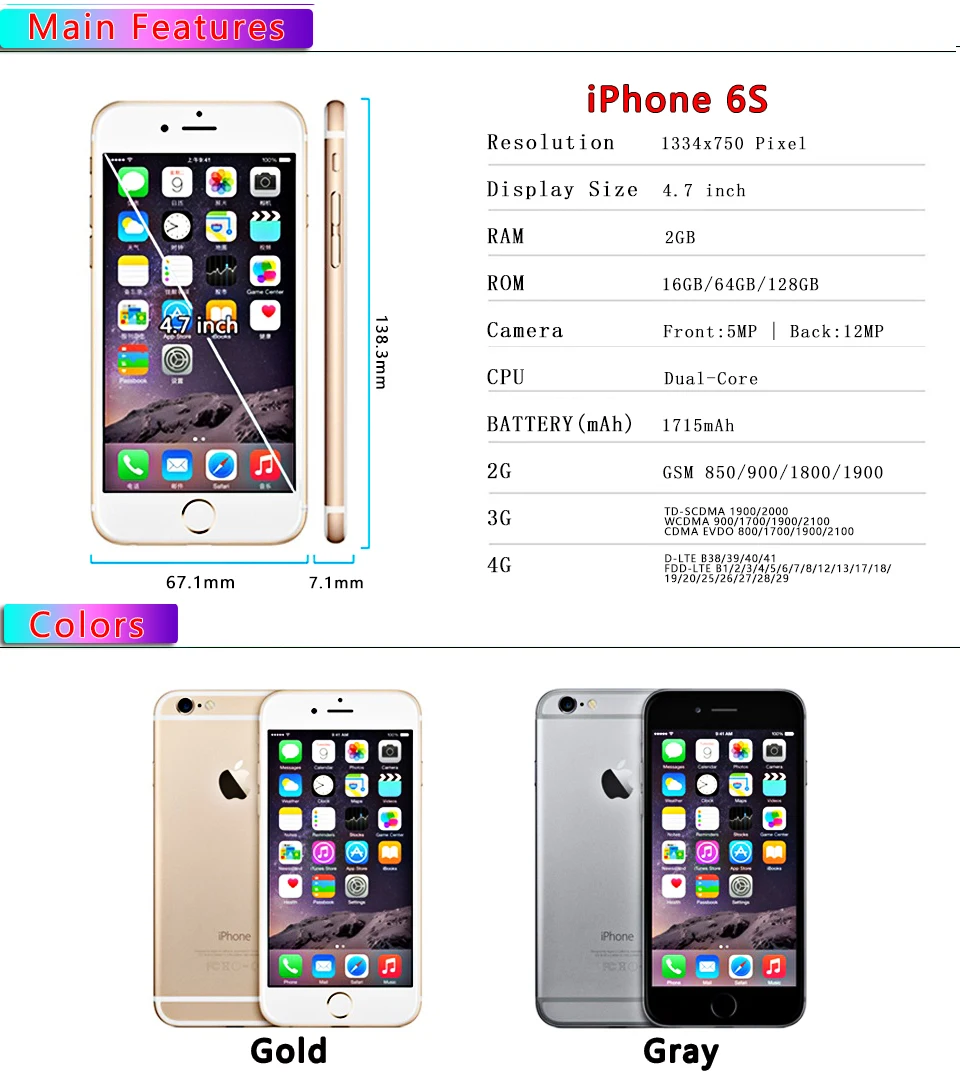 Best Price Comparison With used Phone Apple iPhone 6 s 2 GB de RAM 16GB ROM teléfono celular IOS A9 Dual core 12MP Cámara IPS LTE teléfono inteligente