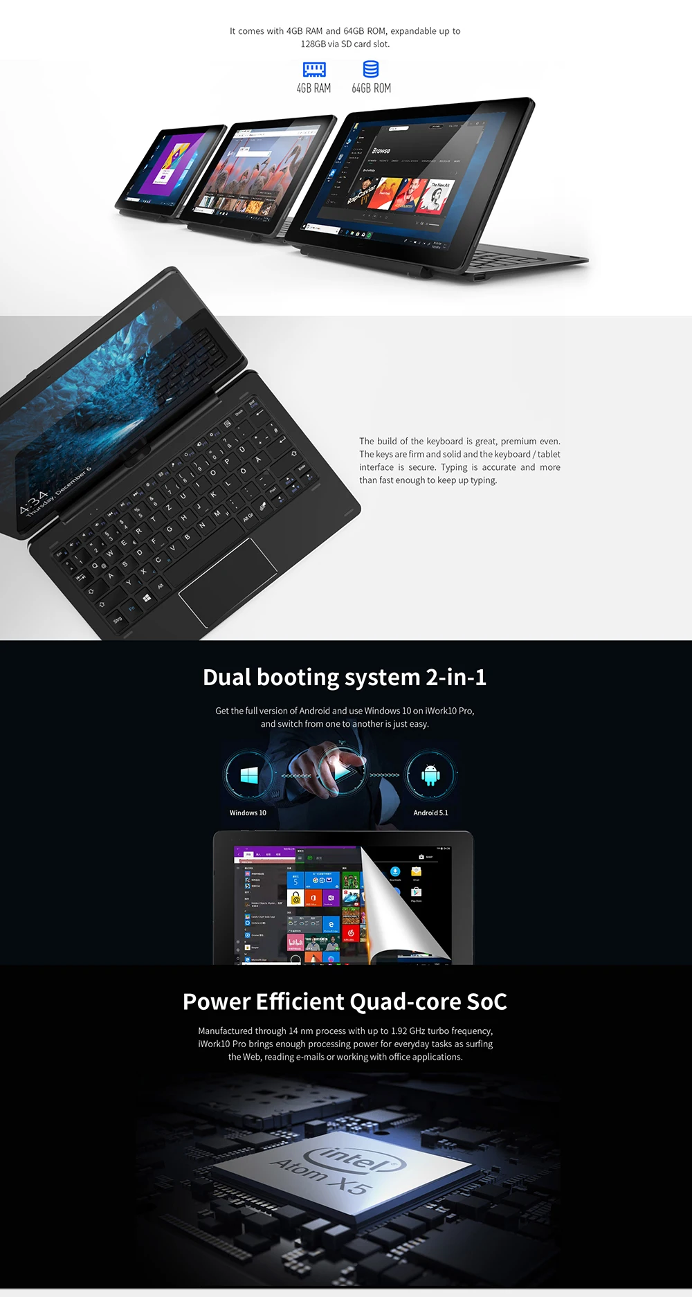 The best product you are looking for is "2020 Alldocube Laptop iWork10 Pro Tablet 10.1 Inch IPS Display Intel Atom Z8350 4GB RAM 64GB Windows10 Android5.1 Dual OS". This product is available and ready to be purchased. Get attractive discounts every time you shop in our store (aliexpress.com). Aliexpress also provides a coupon of $ 3 for the first buyer to shop there. don't forget to bookmark our store page so you can go shopping again anytime..