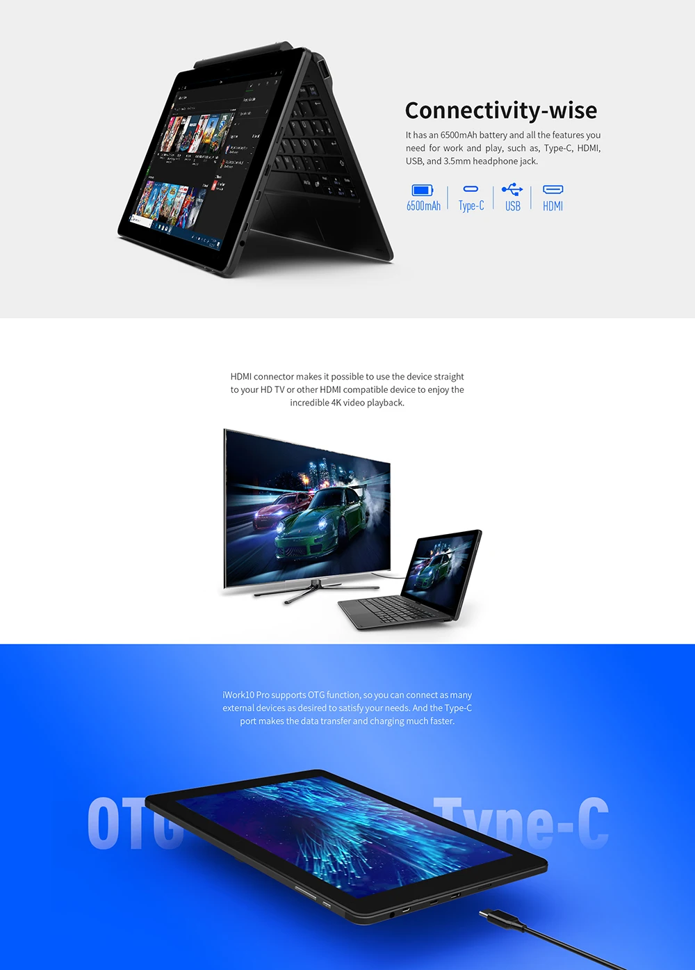 | 2020 Alldocube Laptop iWork10 Pro Tablet 10.1 Inch IPS Display Intel Atom Z8350 4GB RAM 64GB Windows10 Android5.1 Dual OS |